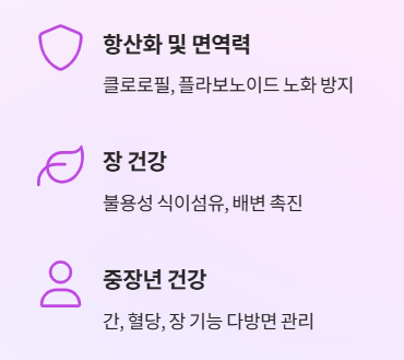 - 클로로필과 플라보노이드가 노화를 방지하고 면역력을 높여줍니다.