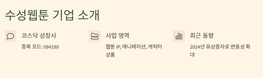 **수성웹툰(구 수성)**은 코스닥 상장사로,