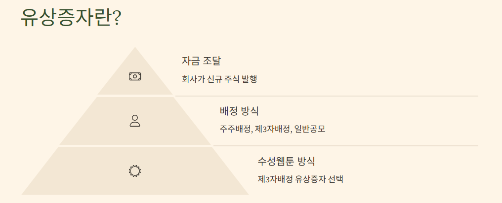 | 제3자배정 유상증자 | 특정 투자자에게 주식 배정하여 자금 유입 |