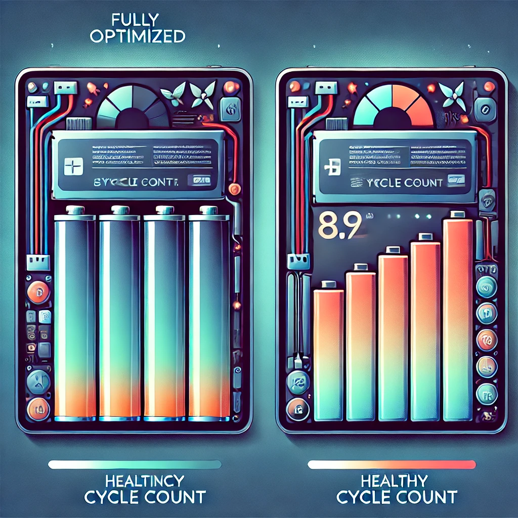 - 배터리 사이클 수: 배터리의 충전과 방전을 한 번 완료한 횟수를 나타냅니다.