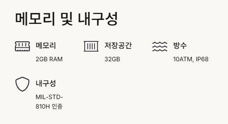 - 방수/내구성: 10ATM, IP68, MIL-STD-810H 인증