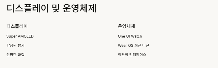 - 운영체제: One UI Watch 기반 Wear OS 최신 버전