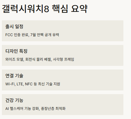 이 글에서 갤럭시워치8의 핵심 스펙부터 언팩 일정, 건강 기능까지 한눈에 정리해드립니다.
